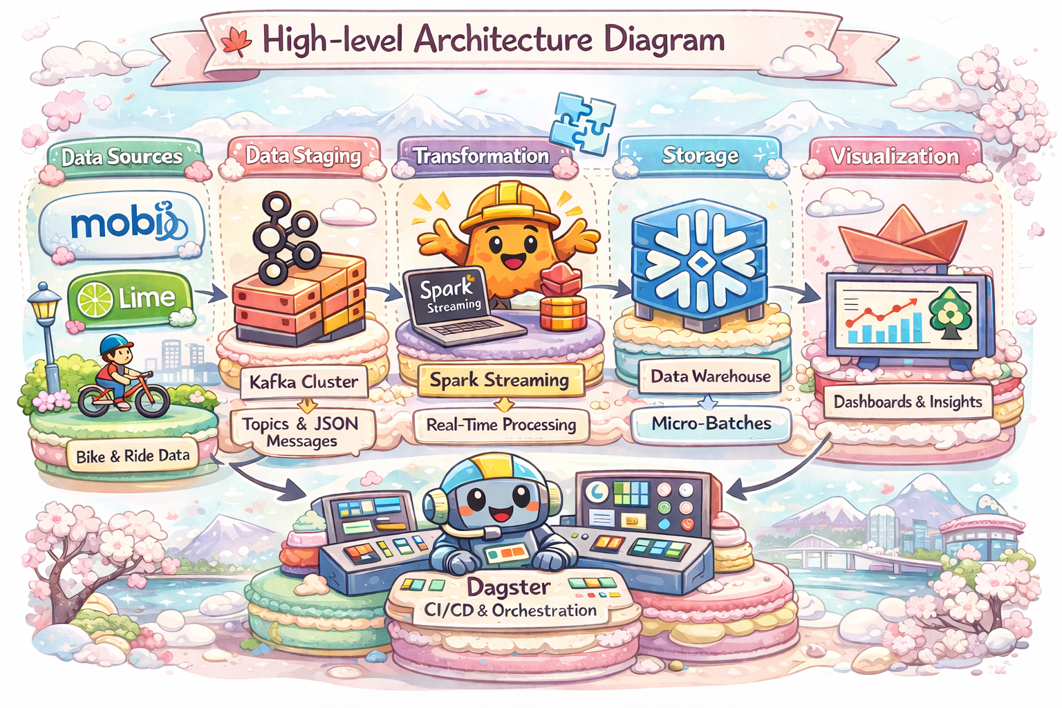 It includes the streaming pipeline, transformation logic, orchestration setup, and project assets used to build this end-to-end bike-sharing analytics workflow.